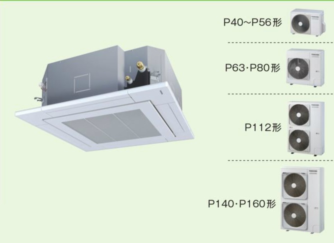 鳥取・島根・岡山・広島・山口・業務用エアコン 東芝 4方向吹出し シングル ワイヤードリモコン 省工ネneo AUSA05665JM4 P56(2.3馬力) スーパーパワーエコキュープ 単相200V [AUSA05665JM4]